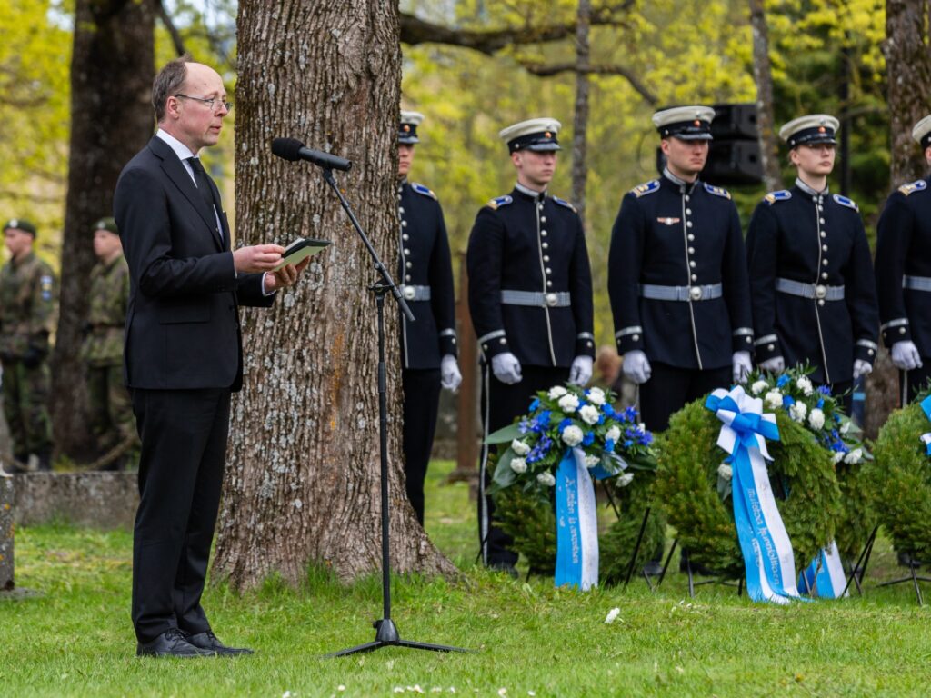 Puhemies Halla-aho toi valtiovallan tervehdyksen viime vuonna Kaatuneiden muistopäivänä Lappeenrannassa järjestettyyn kentältä löydettyjen tunnistamattomien sankarivainajien hautaustilaisuuteen.